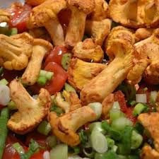 Cantharellen met tomaten.