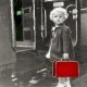 Ik zie een foto van lang geleden. Klein meisje staat in haar eentje bij de trein. Het meisje is nog heel jong. Ze staat alleen. Het meisje heeft een rood koffertje in haar hand. Het portier van de trein is geopend. Zo te zien gaat ze zo dadelijk in de trein stappen.