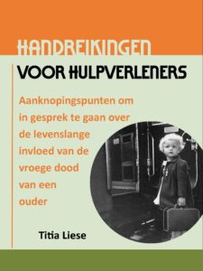 Titia Liese, 8 jaar toen haar moeder overleed. Gebaseerd op deze vroege verlieservaring en haar decennia lange ervaring in het werk met Verlaat Verdriet-ers heeft Titia haar levenswerk ontwikkeld: Rouw kent geen tijd – Verlaat Verdriet verwerken en helen.