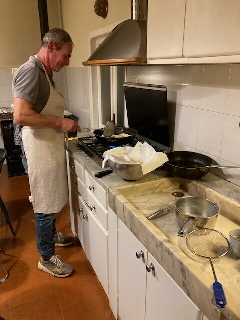Twee maanden voor vertrek naar Codiponte besloten we te werken met een kleine groep van vier deelnemers. In overleg sloten we de aanmeldingsmogelijkheid voor De weg van liefde 2024. Zo kwam een extra kamer beschikbaar voor een speciale extra bewoner van het gele huis. Een bewoner die wel Verlaat Verdriet-er is, maar geen actieve deelnemer aan De weg van liefde. ‘Zou het niet mooi zijn als we gedurende deze week een soort Italiaans-Nederlandse familie kunnen zijn?’ stelde ik Maartje afgelopen zomer voor. ‘Wijzelf verzorgen het ontbijt en de lunch en eten samen met de extra gast. Davide verwent ons in de avond met zijn overheerlijke avondmaaltijden. ’s Avonds eten we allemaal samen in de grote keuken. Aan de grote tafel. Als een Italiaanse familie.
