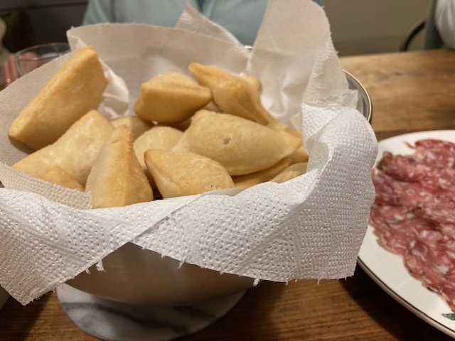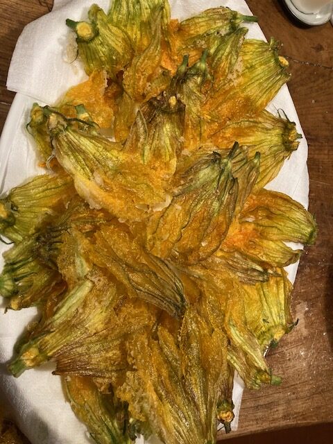Als ik dan nu toch met je deel, moet ik natuurlijk ook de jaarlijks terugkerende favorieten van elke Weg van liefde met je delen. De gefrituurde fiori di zucca – de gefrituurde bloemen van de courgette. En de scabei – gefrituurde deegkussentje die we zelf vullen met overheerlijke soorten kaas en vleeswaren.