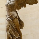 Een jaar of twaalf zal ik geweest zijn toen ik voor de eerste keer in Parijs was. Het Louvre bezocht. Het beeld zag met de voor mij toen nog onbegrijpelijke naam Victoire de Samothrace. Een gigantisch beeld van een vrouw met enorme vleugels. Ik viel voor dit beeld dat me overweldigde. Als een blok. Vanaf dat moment maakt de Nikè van Samothrake, dat enorme beeld met de naam Overwinning deel uit van mijn leven. ‘Zo zou ik willen leven‘ heb ik vaak gedacht. Zo groot. En zo lichtvoetig. Met zulke enorme vleugels om me te dragen. Soms was ze tastbaar in mijn leven. Soms wat meer op de achtergrond. Maar als ze er was – en eigenlijk nog altijd is – dan voel ik die lichtvoetigheid in me waarmee ze landt. Gedragen door de wind. Zo maakt deze Nikè al sinds mijn twaalfde jaar deel uit van mijn leven.
