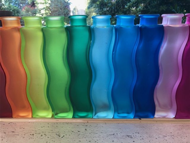Verlaat Verdriet-ers die bij mij de workshop Verlaat Verdriet of de workshop Dubbel Ouderverlies doen, worden er altijd vrolijk van. Van al die flesjes die in m’n huis staan. Zo aanstekelijk werkt de regenboog. En: als we het toch over de regenboog hebben, dan moeten we het ook nog even hebben over die 2 potten met goud. Die 2 potten met goud die aan beide einden van de regenboog staan. Daar zijn we allemaal van op de hoogte (toch?). In mijn Verlaat Verdriet-werk staat aan het ene uiteinde van de regenboog de pot met goud die jij was. Als kind. Onbevangen. Vol mogelijkheden en ambities. Aan het andere einde van de regenboog staat eveneens een pot met goud. Te wachten op jou. Daar kun je op vertrouwen. Zo krijgen ZINGEVING, VERBINDING en VERTROUWEN een hele bijzondere betekenis. Voor mij. Maar ook voor jou.